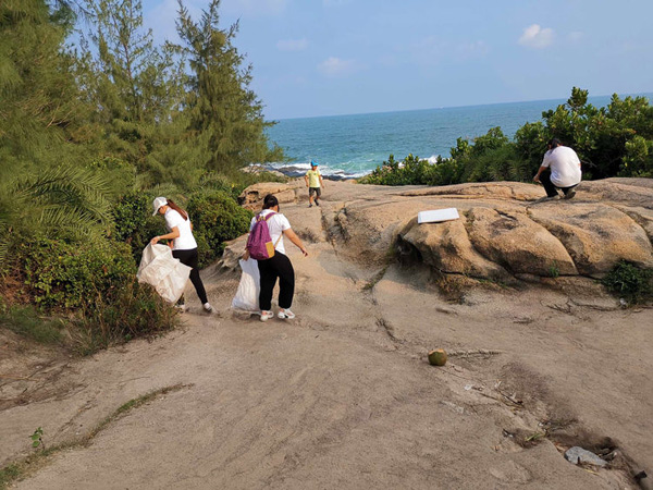 當天下午3點,參加活動的萬泰志愿者們抵達文昌銅鼓嶺石頭公園。在本次環(huán)保公益活動中,為了宣傳環(huán)保理念,更有同事帶上了自己的孩子一起體驗。志愿者們攜帶大型垃圾袋,以小分隊的形式沿著石頭公園海灘劃分區(qū)域進行了地毯式清理,動手撿拾游客丟棄的塑料瓶、食品包裝袋、泡沫、廢棄漁網(wǎng)等垃圾,不留死角的徹底對海灘進行了一次大清潔。在深一腳淺一腳的沙灘上,在高低不平的礁石中,在低矮的草叢前,志愿者不怕苦不怕累彎腰撿垃圾的身影隨處可見,炎炎烈日下,海岸清潔持續(xù)了一個多小時,最終清理了包括廢棄漁網(wǎng)、塑料瓶、塑料袋等生活雜物百余件。