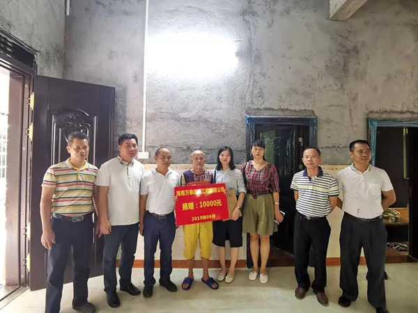 首先,海南萬泰領(lǐng)導(dǎo)一行來到龍?zhí)伶?zhèn)文道村委會(huì)洋溶村慰問特困戶杜承國(guó)。由于杜承國(guó)家地處偏僻,道路運(yùn)輸不便,人工成本較高,政府危改補(bǔ)貼有限,無法支持杜承國(guó)將新房建好。海南萬泰建筑工程公司慷慨解囊,捐贈(zèng)20000元幫助杜承國(guó)完成危房改造工作,安心入住新房。杜承國(guó)接到資助款非常激動(dòng),表示在自己為錢發(fā)愁的時(shí)候,海南萬泰及時(shí)伸出了援手,讓他能付清建房款項(xiàng),早日住上新房,他非常感謝政府和海南萬泰建筑工程公司的關(guān)心和支持。