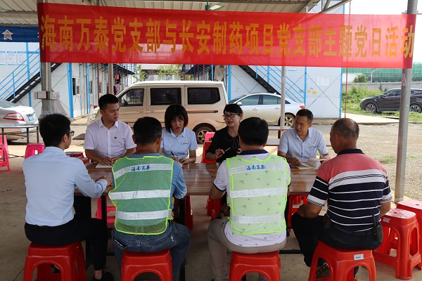 為提升公司基層黨建工作水平,激勵引導黨員立足崗位做表率,不斷推進自貿港建設作出新的貢獻,海南萬泰公司黨支部于2020年9月9日上午組織黨員深入在建項目長安制藥美安科技新城新廠建設工地,與長安制藥項目黨支部聯(lián)合開展了一次接地氣、入人心的專題黨日學習活動,主要是以學習海南自貿港建設總體方案為重點,大家結合各自實際交流和分享了學習心得體會,一致感到自貿港建設給企業(yè)發(fā)展帶來了紅利,為老百姓帶來了實惠,作為企業(yè)的一名共產黨員應該即當好自貿港的建設者,又要通過模范帶頭作用,當好自貿港建設的推動者。萬泰公司黨支部副書記孟晨、長安制藥項目黨支部書記張蕾及項目黨員、入黨積極分子參加了活動。