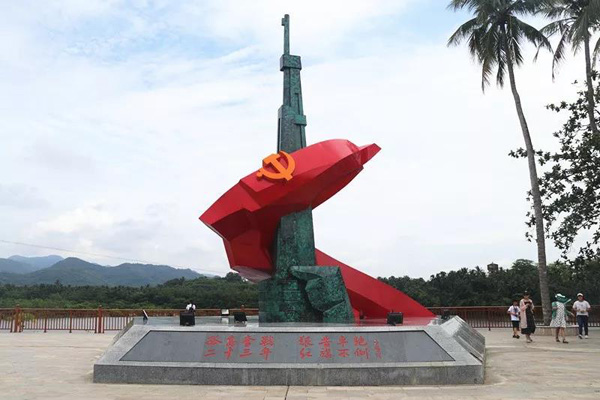 1927年,椰子寨戰(zhàn)斗拉開了全瓊武裝總暴動的序幕,開啟了瓊崖革命武裝斗爭“二十三年紅旗不倒”的偉大征程。在原椰子寨戰(zhàn)斗登陸渡口處已經(jīng)建起紀(jì)念廣場,由一面旗幟和長槍組成的椰子寨戰(zhàn)斗主體雕塑總高度9.23米,寓意紀(jì)念9月23日這個不同尋常永遠值得紀(jì)念、載入史冊的日子。