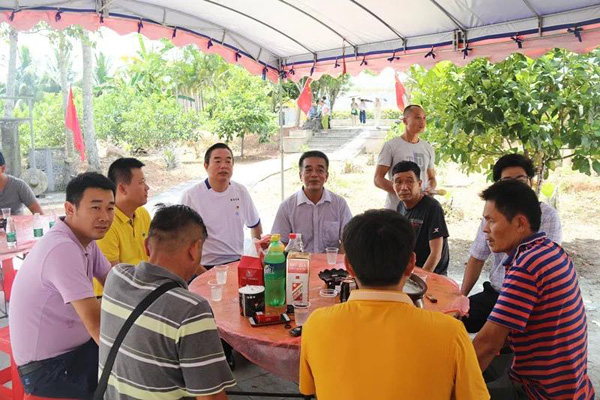 萬泰員工與當(dāng)?shù)卮迕衤?lián)餐,氣氛融洽歡樂。就餐完畢后,在萬泉河文化研究會莫會長的帶領(lǐng)下,前往內(nèi)園村的“紅色娘子軍成立會址”參觀學(xué)習(xí)。