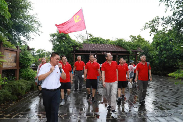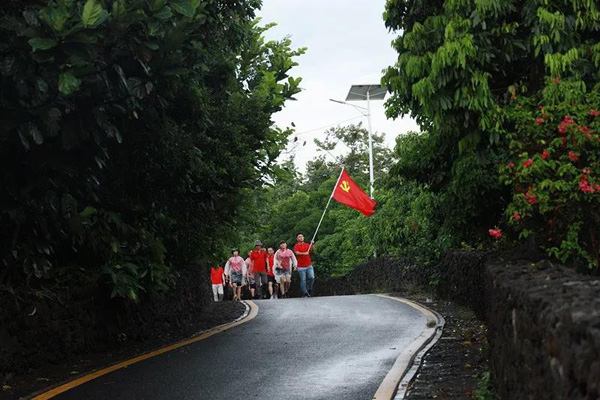 上午7點,大家于施茶村村委會文化室前聚集,在丁飛局長發(fā)表動員講話后,全員冒雨出發(fā)。