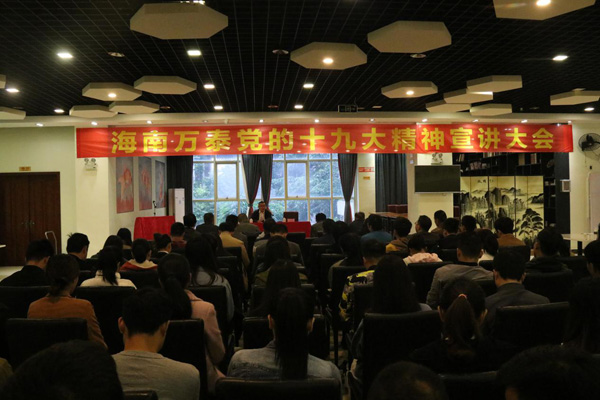 為深入貫徹十九大精神,落實十九大精神入基層、進企業(yè)的要求,11月25日,湖北省政府駐海南辦事處主任、湖北省駐瓊黨工委書記黃烈焰;副主任、黨工委副書記馮健;海南省湖北商會常務副會長、五指山清能地產(chǎn)公司董事長羅曉東組成的宣講團到海南萬泰建筑工程有限公司宣傳貫徹黨的十九大精神。