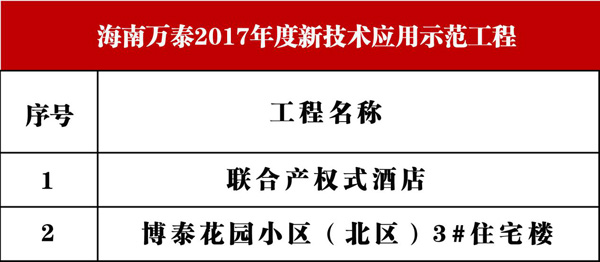 近日,海南省住房和城鄉(xiāng)建設(shè)廳發(fā)布公告,公布了2017年度海南省建筑業(yè)新技術(shù)應(yīng)用示范工程立項評審結(jié)果,共計24項工程獲評新技術(shù)示范工程。其中,海南萬泰建筑住工程有限公司承建的“聯(lián)合產(chǎn)權(quán)式酒店“和”博泰花園小區(qū)(北區(qū))3#住宅樓“兩個項目名列榜單。