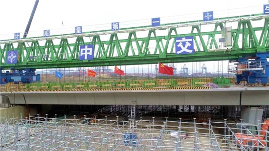 據(jù)介紹,預(yù)制構(gòu)件在中交二航局中山預(yù)制廠集中預(yù)制,經(jīng)過171公里船舶海運(yùn)和3公里陸運(yùn)至施工現(xiàn)場,采用中交二航局自主研發(fā)的TP120預(yù)制裝配式一體化架橋機(jī)進(jìn)行裝配施工。該架橋機(jī)具有施工過程占地面積小、對(duì)沿線地面運(yùn)輸條件要求低、操作平臺(tái)和調(diào)位系統(tǒng)精確可靠,以及上下部構(gòu)件可同時(shí)安裝連接等優(yōu)勢,特別適用于城市交通繁忙地區(qū)的市政橋梁工程建設(shè)。