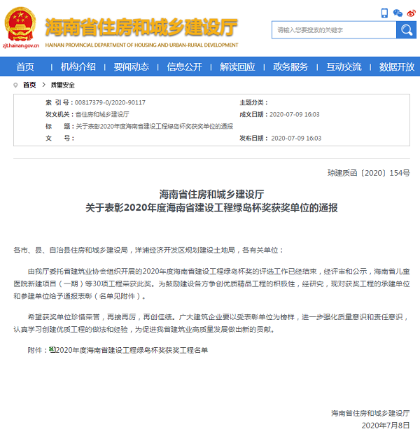 海南省建設(shè)工程“綠島杯”代表著海南省工程建設(shè)的最高質(zhì)量水平。海南萬泰公司獲得此項榮譽,不僅是對“清能·麗景灣一期建安工程(一標段—住宅2#樓)質(zhì)量的肯定,也是對海南萬泰公司管理水平的肯定。
