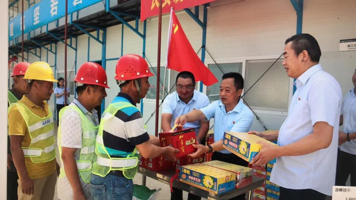 ▲高新區(qū)兩新工委領(lǐng)導(dǎo)到長安項目部開展送清涼活動