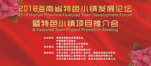 2018年12月2日,為貫徹黨中央、國(guó)務(wù)院關(guān)于推進(jìn)小城鎮(zhèn)建設(shè)的精神和習(xí)近平總書(shū)記在慶祝海南建省辦經(jīng)濟(jì)特區(qū)30周年大會(huì)上關(guān)于“發(fā)展鄉(xiāng)村旅游,打造一批體現(xiàn)熱帶風(fēng)情的精品小鎮(zhèn)”的重要講話精神,促進(jìn)特色小鎮(zhèn)和特色小城鎮(zhèn)的建設(shè)發(fā)展和少數(shù)民族文化保護(hù),落實(shí)國(guó)家發(fā)展改革委先后印發(fā)的《關(guān)于加快美麗特色小(城)鎮(zhèn)建設(shè)的指導(dǎo)意見(jiàn)》《關(guān)于規(guī)范推進(jìn)特色小鎮(zhèn)和特色小城鎮(zhèn)建設(shè)的若干意見(jiàn)》《關(guān)于建立特色小鎮(zhèn)和特色小城鎮(zhèn)高質(zhì)量發(fā)展機(jī)制的通知》的要求,進(jìn)一步規(guī)范特色小鎮(zhèn)建設(shè),推動(dòng)特色小鎮(zhèn)高質(zhì)量發(fā)展,由海南省發(fā)展與改革發(fā)展委員會(huì)、中國(guó)城鎮(zhèn)化促進(jìn)會(huì)、中國(guó)少數(shù)民族文化藝術(shù)促進(jìn)會(huì)發(fā)起主辦,由中國(guó)民族經(jīng)濟(jì)開(kāi)發(fā)總公司、北京中民基業(yè)投資管理有限公司承辦的2018海南省特色小鎮(zhèn)發(fā)展論壇暨特色小鎮(zhèn)項(xiàng)目推介會(huì),在位于海南海口的中國(guó)(海南)改革發(fā)展研究院會(huì)議廳成功舉行。