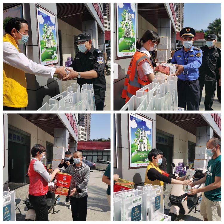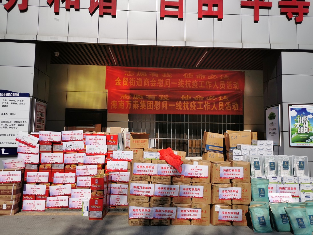 最美人間四月天,同心戰(zhàn)“疫”向未來。四月,隨著國內(nèi)新冠疫情形勢越來越嚴(yán)重,省內(nèi)疫情也隨之洶涌襲來,在這危急關(guān)頭,眾多志愿者主動(dòng)向前,迎難而上,手拉手筑起了疫情防控戰(zhàn)線,保障了人民百姓的健康安危,為向一線抗疫工作人員表達(dá)感謝之情,展現(xiàn)互幫互助、互相扶持、無私奉獻(xiàn)的中華民族優(yōu)秀精神,2022年4月8日,海南萬泰集團(tuán)主動(dòng)參加了由龍華區(qū)金貿(mào)街道商會(huì)主辦的慰問一線抗疫工作人員活動(dòng)。萬泰公司常務(wù)副總顏利、黨支部書記孟晨、總經(jīng)理助理曹珊珊等一行參加了本次活動(dòng),共計(jì)捐贈(zèng)了價(jià)值20000元的糧油。