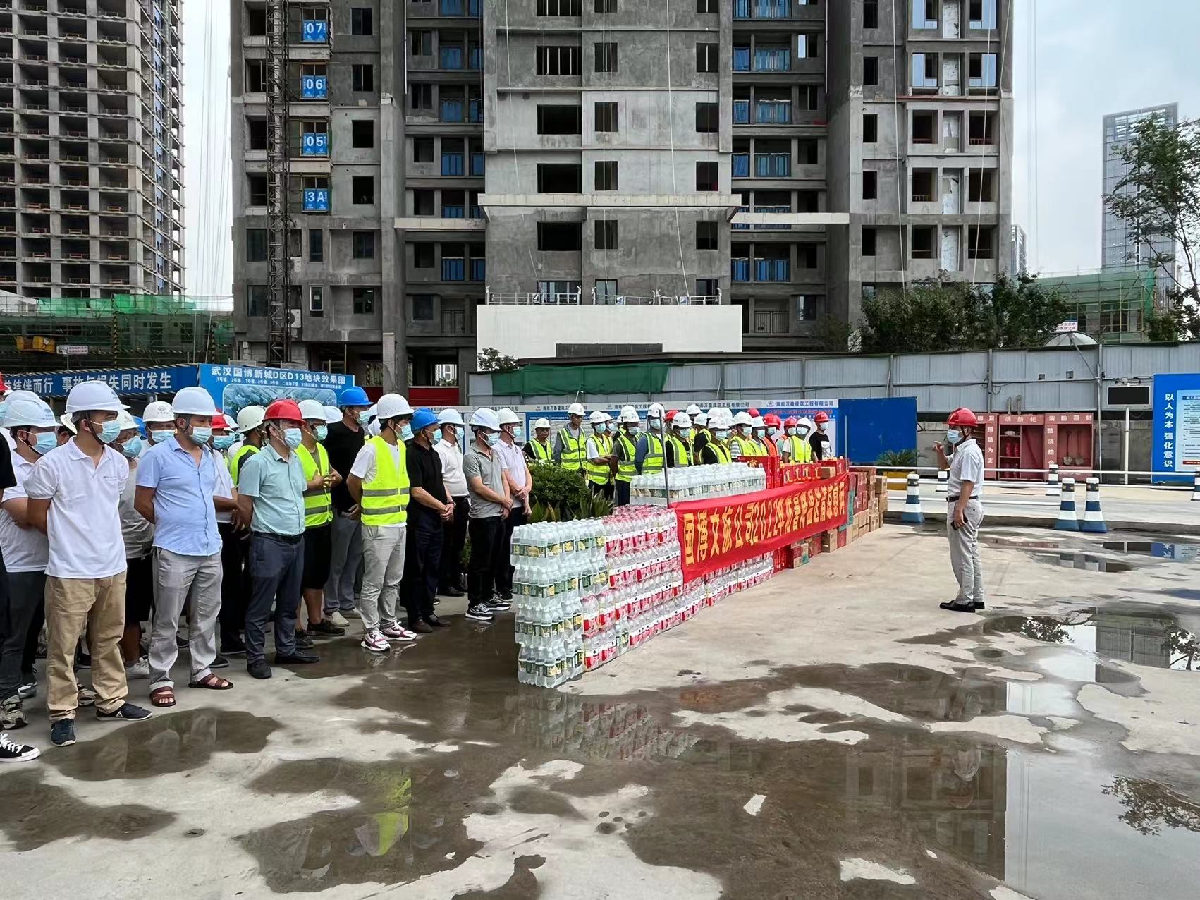 夏日送清涼,真情沁人心。2022年7月28日,武漢國博文旅公司在武漢國博新城DⅡ、D13、D14、C2、C4地塊成功舉辦2022年“夏送清涼”一線工人慰問活動。武漢國博文旅副總經(jīng)理江立偉、質(zhì)安部張部長,海南萬泰湖北分公司承建的武漢國博新城D區(qū)D13地塊一標(biāo)段項目經(jīng)理陶少武以及中鐵大橋局,中國中冶,上海建工、武漢建工,天時建安,中鐵四局,方正監(jiān)理,天衡監(jiān)理,武院監(jiān)理等十四家公司相關(guān)人員參加本次慰問活動。