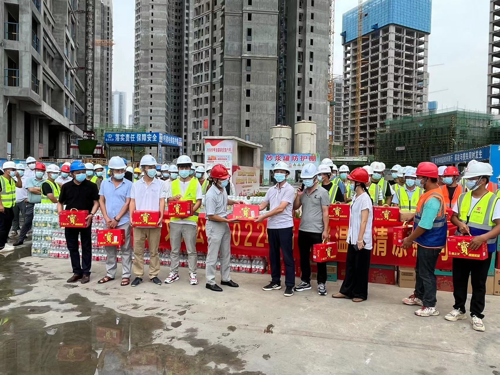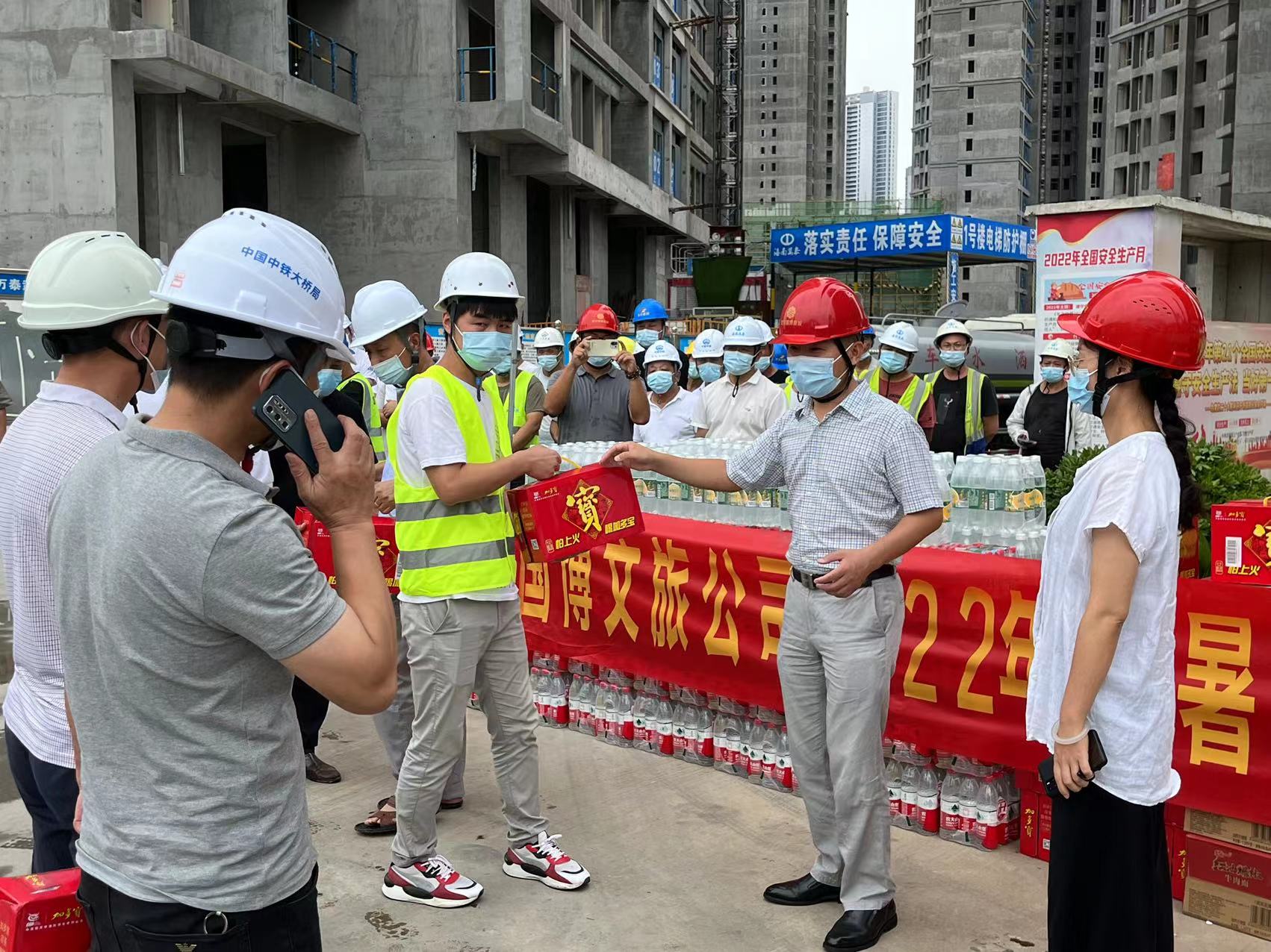 活動上,武漢國博文旅副總經(jīng)理江立偉對在炎熱天氣里仍然堅守在一線崗位上的廣大工友們表示慰問和感謝,并叮囑大家注意防暑降溫,提高防范意識,保護(hù)好自身安全。同時要求所有項目管理人員關(guān)心工地一線工人的身體健康,認(rèn)真做好防暑降溫工作,嚴(yán)格落實各項安全生產(chǎn)措施,確保安全生產(chǎn)工作有條不紊。