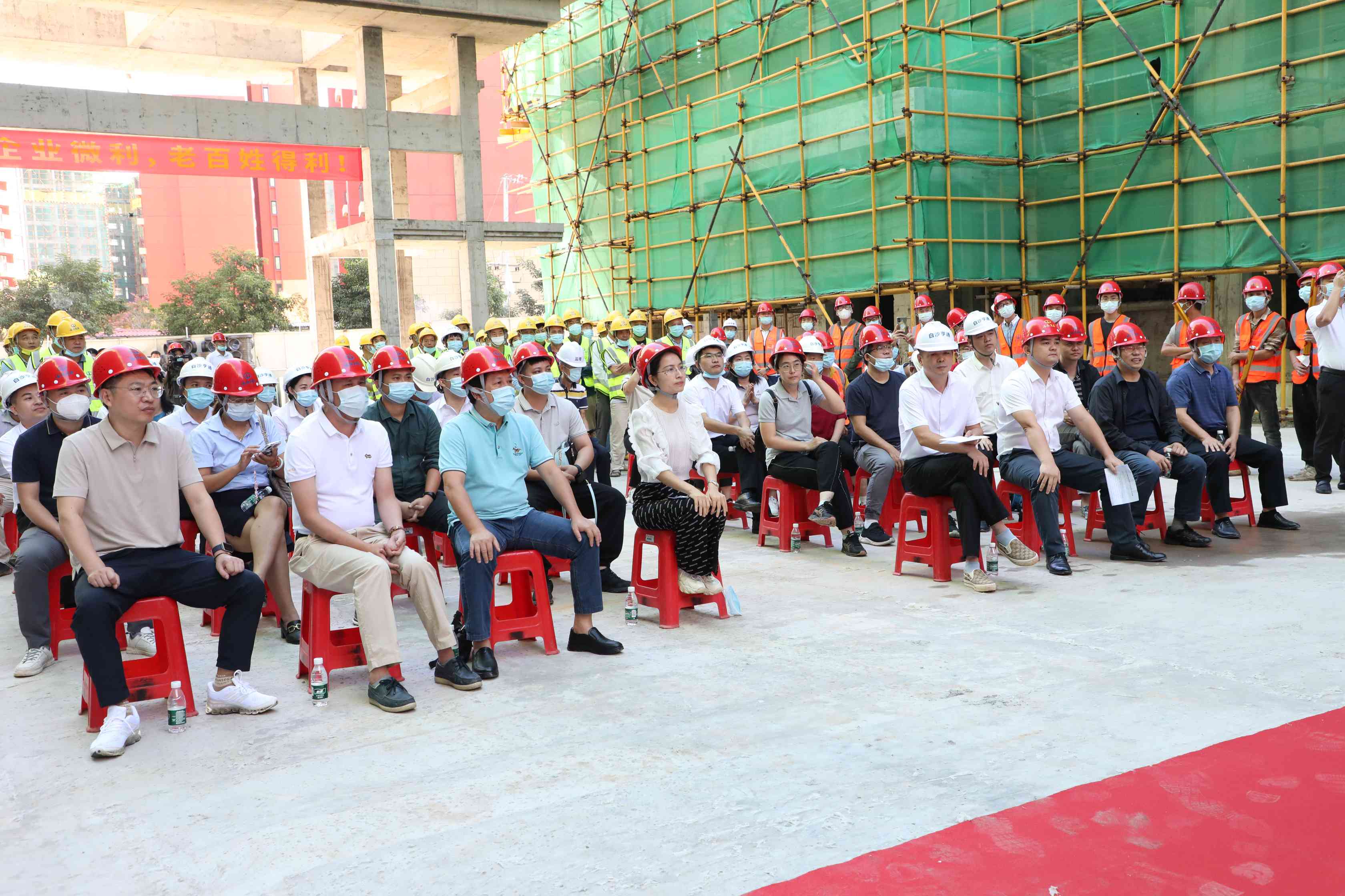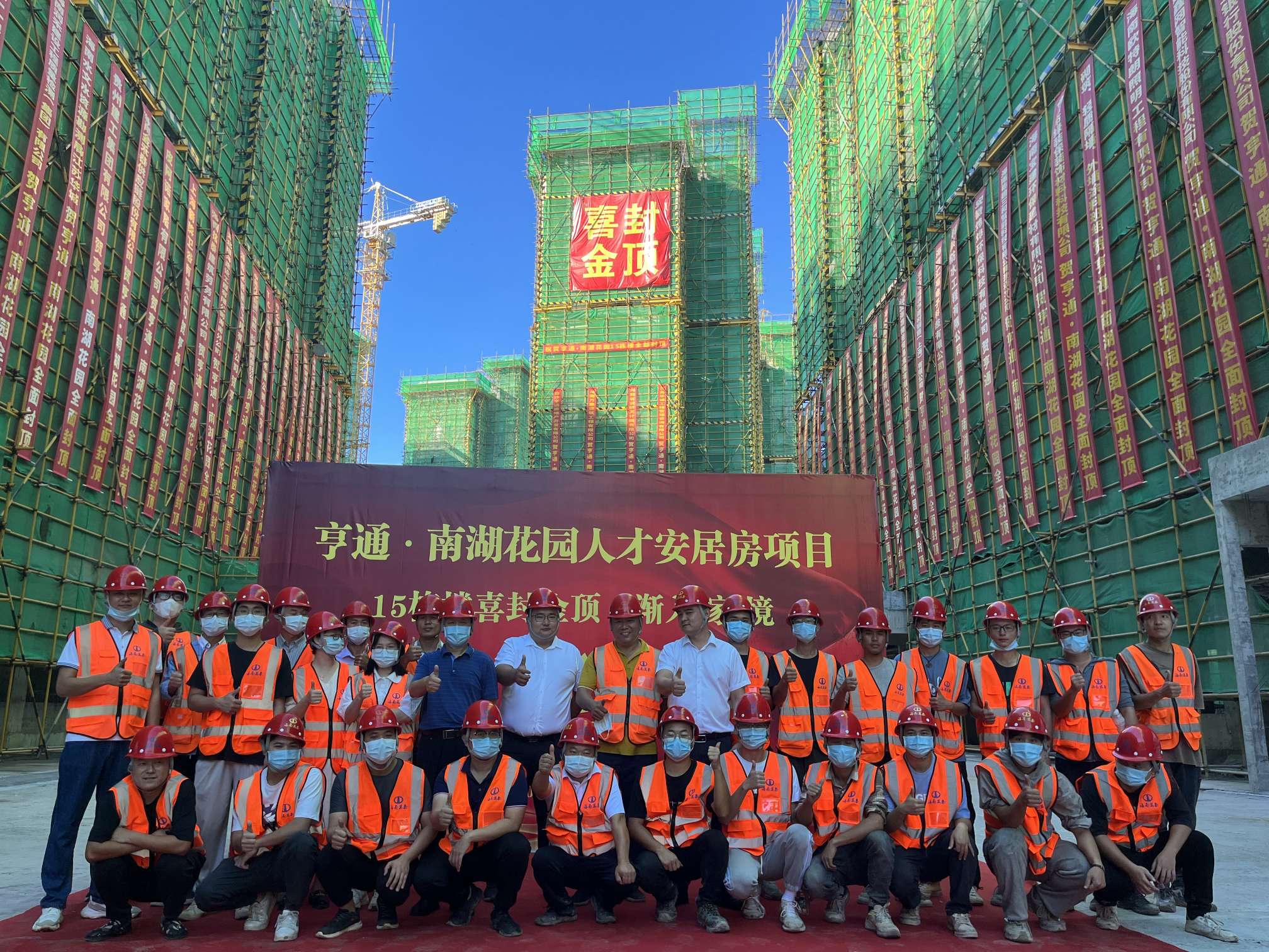 亨通安居集團董事長周金華向所有為項目建設(shè)辛勤付出的一線人員致以衷心的感謝,并表示該項目自開工以來,工程持續(xù)受到疫情、高溫等不利因素的干擾,給施工建設(shè)造成了極大的阻礙。面對困難,項目部以“能力提升建設(shè)年”為載體,以“安全生產(chǎn)月”活動為有力抓手,在確保安全、質(zhì)量的前提下,采取各種舉措搶抓工程進度,順利實現(xiàn)了主體結(jié)構(gòu)全面封頂,希望大家能夠再接再厲,共同做好項目建設(shè)后續(xù)工作。