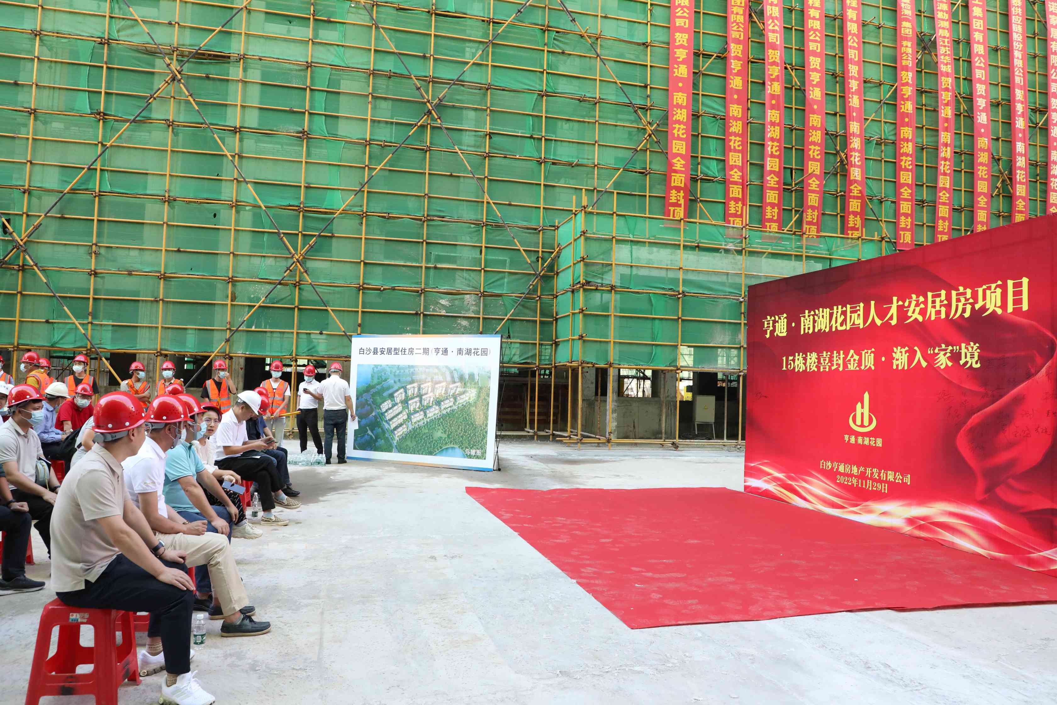 為了貫徹落實黨的二十大精神,加快推進白沙重點民生工程建設(shè),致力于打造宜居新生活,2022年11月29日,由海南萬泰建筑工程有限公司承建的省重點安居房項目——白沙亨通·南湖花園項目主體結(jié)構(gòu)全面封頂儀式圓滿舉行。白沙縣住建局、審批局、資規(guī)局、不動產(chǎn)中心及融媒體中心相關(guān)負責人,亨通安居集團董事長周金華,萬泰公司副總經(jīng)理張宇、工程部部長侯領(lǐng)等有關(guān)人員參加本次封頂儀式,一同見證這一喜慶時刻。儀式由亨通安居集團經(jīng)理冼繼利主持。