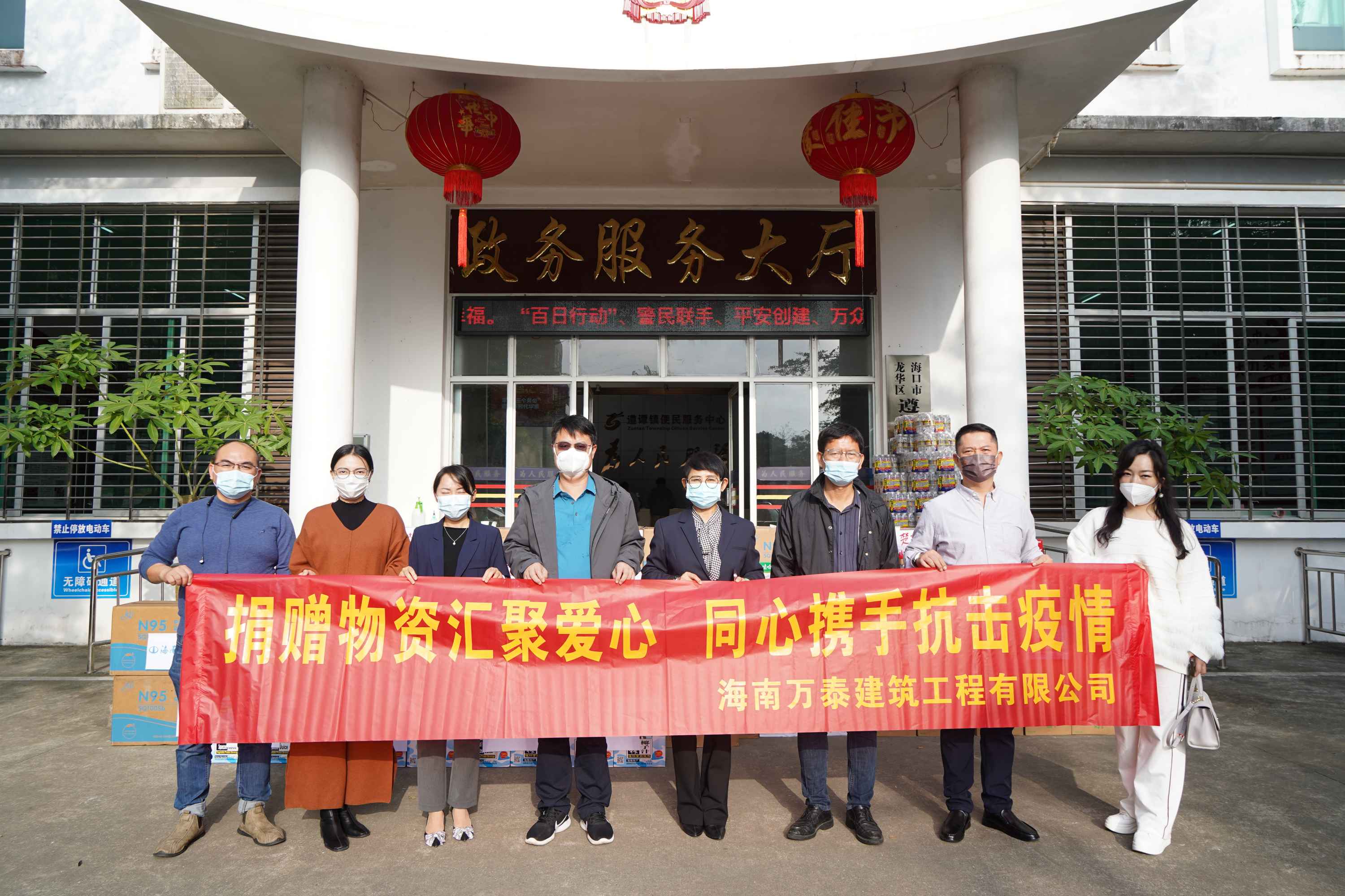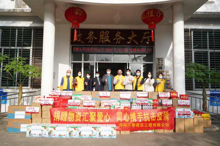 為貫徹落實(shí)黨的二十大精神,傳遞溫暖,奉獻(xiàn)愛心,2022年12月8日,海南萬泰公司黨支部、工會(huì)等有關(guān)人員參加了由龍華區(qū)統(tǒng)戰(zhàn)部、區(qū)工商聯(lián)、金貿(mào)街道商會(huì)組織的慰問遵譚鎮(zhèn)一線抗疫工作者活動(dòng),向當(dāng)?shù)乜挂吖ぷ髡呔栀?zèng)價(jià)值2萬余元的10000個(gè)N95口罩。
