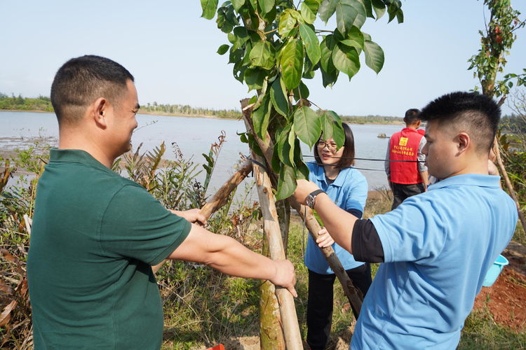 活動當(dāng)天,艷陽高照,晴空萬里,大家紛紛拿著鐵鍬,拎起水桶,以十足的干勁與熱情積極投入到植樹播種中,挖坑、放苗、扶正、填土、澆水,一氣呵成,全然不顧揮灑的汗水。在大家的分工合作下,一棵棵新栽苗木迎風(fēng)挺立,給初春的大地增添了盎然的生機和蓬勃的朝氣,形成了一道亮麗的風(fēng)景線。海南萬泰公司黨支部書記曹珊珊及部分黨員紛紛表示,將會把本次實踐活動的所學(xué)所感融入到今后工作與生活中,不斷提升自我,努力為建設(shè)美麗新海南不斷地添磚加瓦。