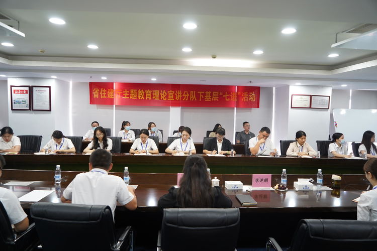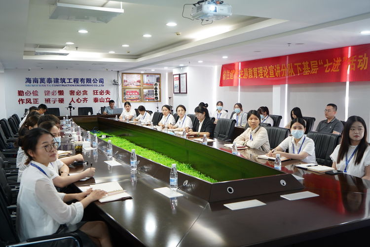 為深入學(xué)習(xí)黨的二十大精神,開展好學(xué)習(xí)貫徹習(xí)近平新時代中國特色社會主義思想主題教育,引導(dǎo)廣大黨員群眾深刻領(lǐng)悟“兩個確立”、增強“四個意識”、堅定“四個自信”、做到“兩個維護(hù)”,推動黨的二十大精神在基層走深走實,2023年5月25日,海南省住房和城鄉(xiāng)建設(shè)廳人事處二級調(diào)研員、行業(yè)黨委專職副書記李述朝,黨建指導(dǎo)員陳小娜走進(jìn)海南萬泰公司開展學(xué)習(xí)貫徹習(xí)近平新時代中國特色社會主義思想主題教育理論宣講“七進(jìn)”活動。萬泰公司黨員及員工近50人參加了本次宣講活動。