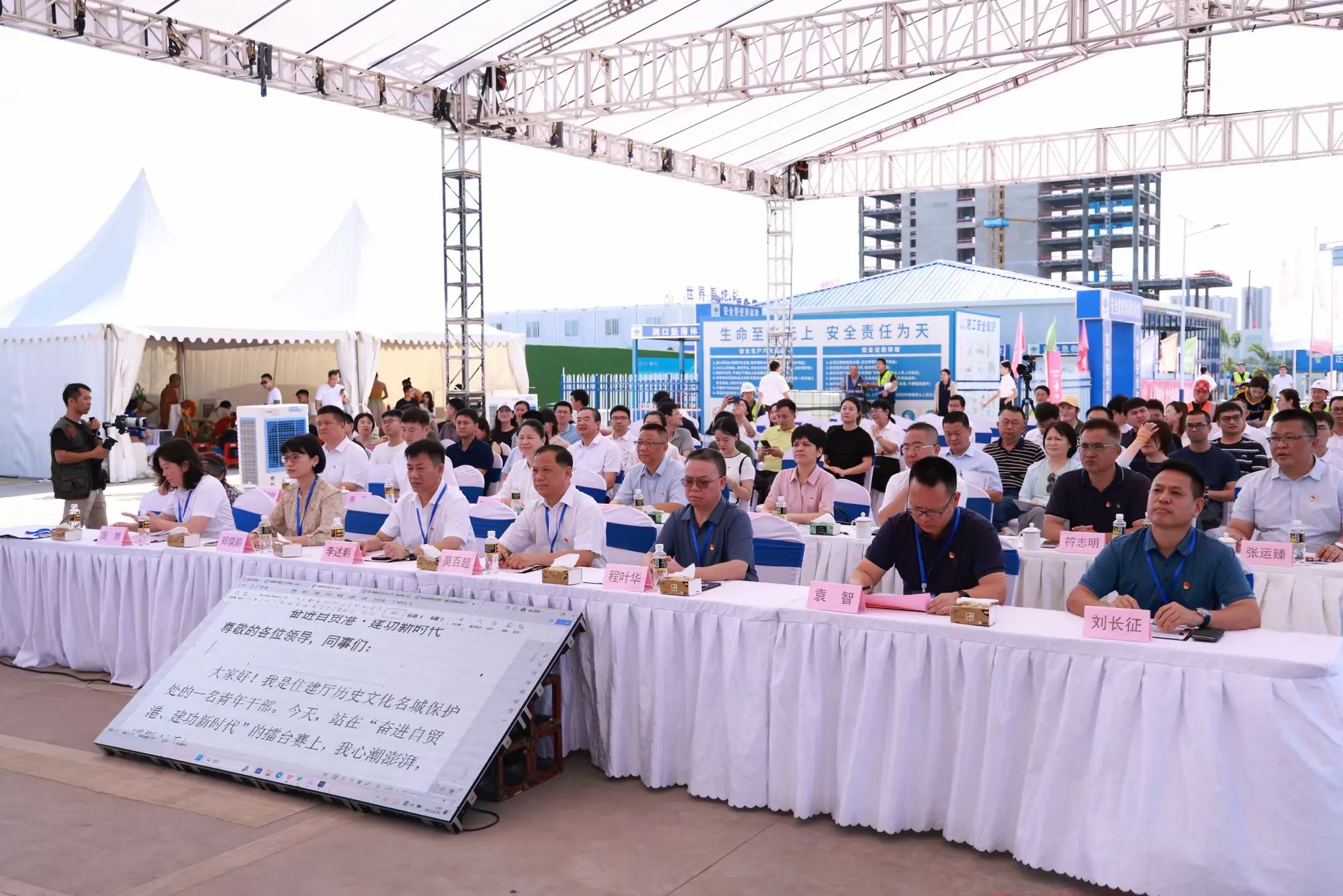 為深入學習貫徹習近平新時代中國特色社會主義思想,進一步發(fā)揮理論宣講統(tǒng)一思想、凝心聚力作用,激勵廣大干部群眾在加快海南自貿(mào)港建設(shè)中擔當作為、干事創(chuàng)業(yè),6月29日,由海南省住建廳主辦,海南省質(zhì)安局、中化學建設(shè)(海南)有限公司共同承辦的“奮進自貿(mào)港,建功新時代”宣講擂臺賽決賽在中國海油深海能源開發(fā)總指揮部基地01地塊項目舉辦。省住建廳黨組成員、副廳長劉聯(lián)偉,省委直屬機關(guān)工委組織部部長潘雅斯,中化學建設(shè)(海南)有限公司總經(jīng)理張小龍等相關(guān)單位領(lǐng)導出席比賽現(xiàn)場,為所有參賽選手們加油助威。
