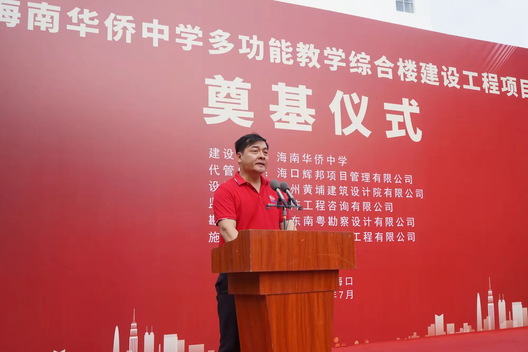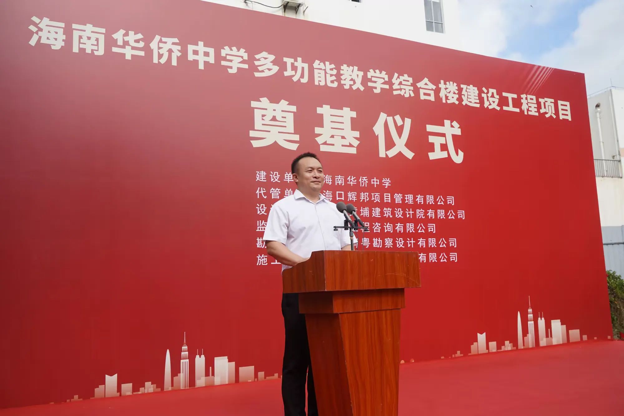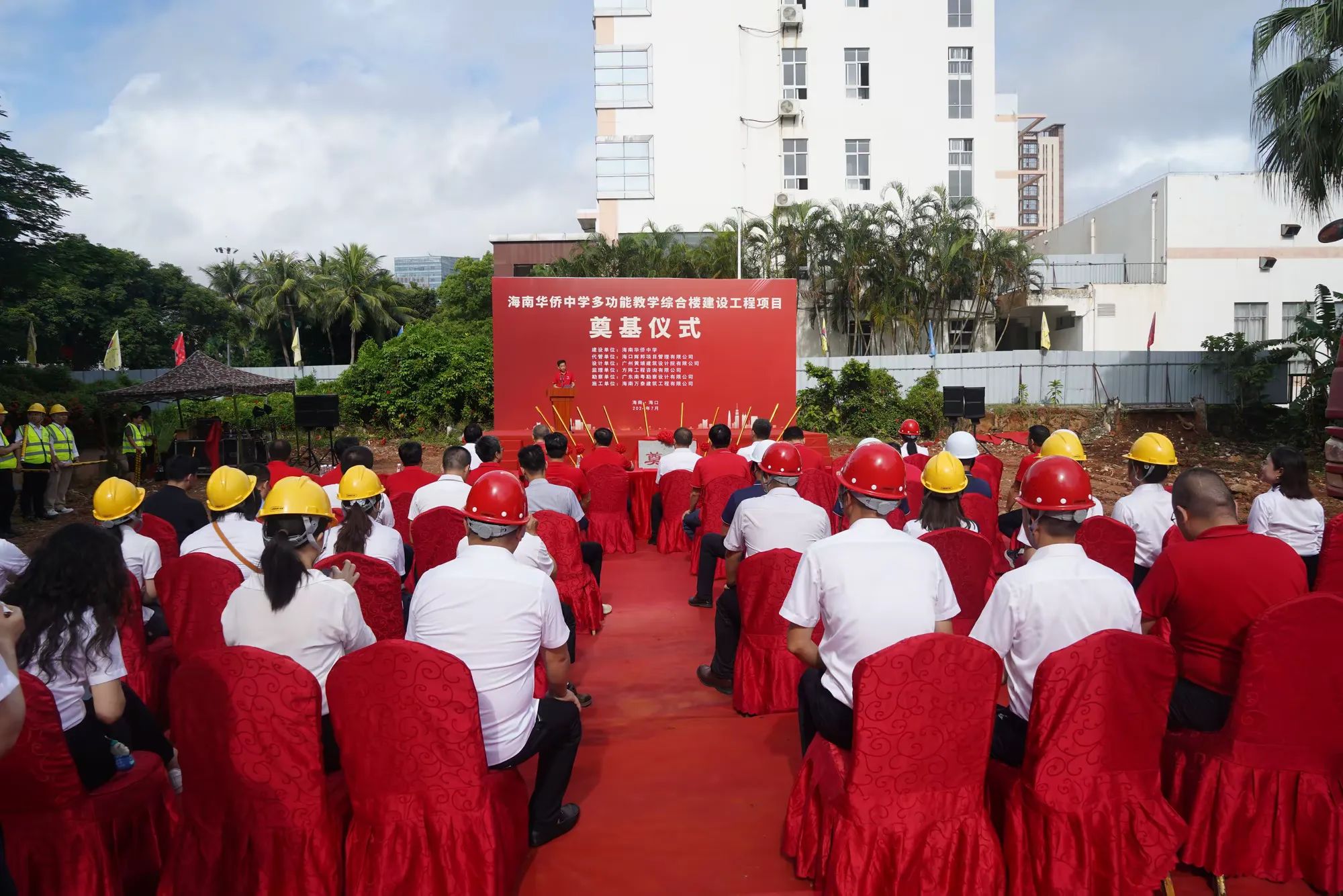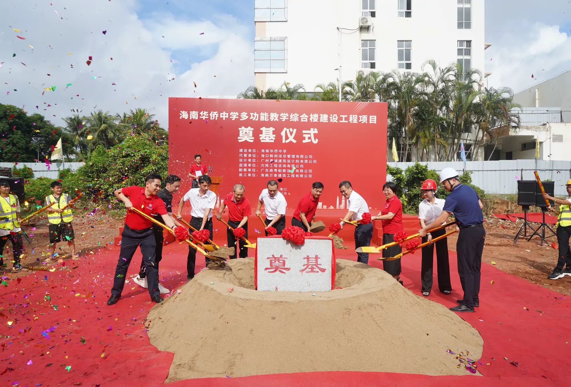 七月綠意爭(zhēng)相艷,書生意氣冠瓊州。7月19日,由海南萬(wàn)泰建筑工程有限公司承建的海南華僑中學(xué)多功能教學(xué)綜合樓建設(shè)工程項(xiàng)目舉行開工儀式。海口市發(fā)改委黨組成員、副主任莊華東,海南華僑中學(xué)黨委副書記、校長(zhǎng)張偉,黨委委員、副校長(zhǎng)吳撼宇,海口市城投集團(tuán)黨委副書記、董事、總經(jīng)理孫傳志以及代管、監(jiān)理、施工單位相關(guān)人員參加了本次活動(dòng)。儀式由海南華僑中學(xué)副校長(zhǎng)吳澤純主持。
