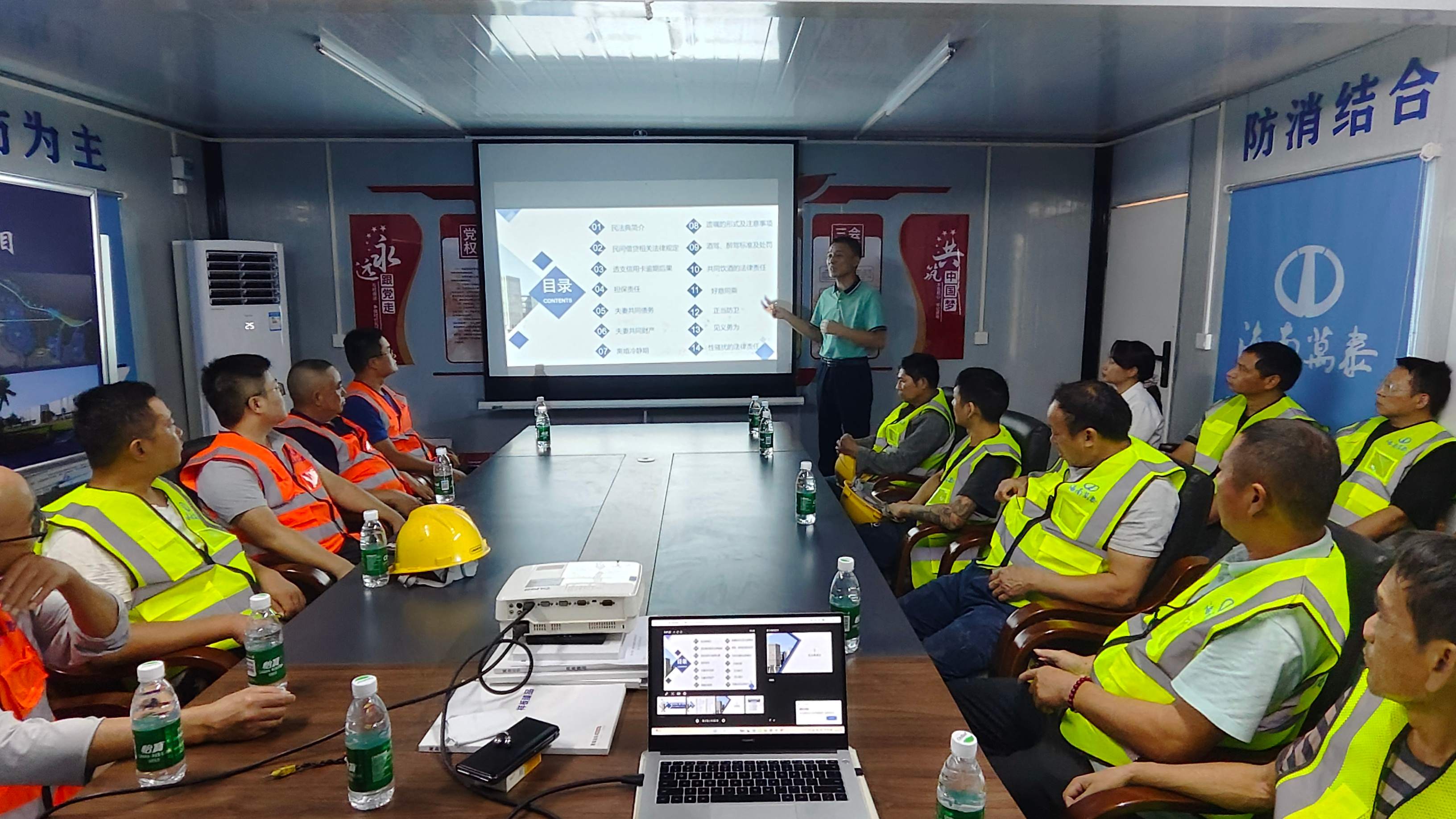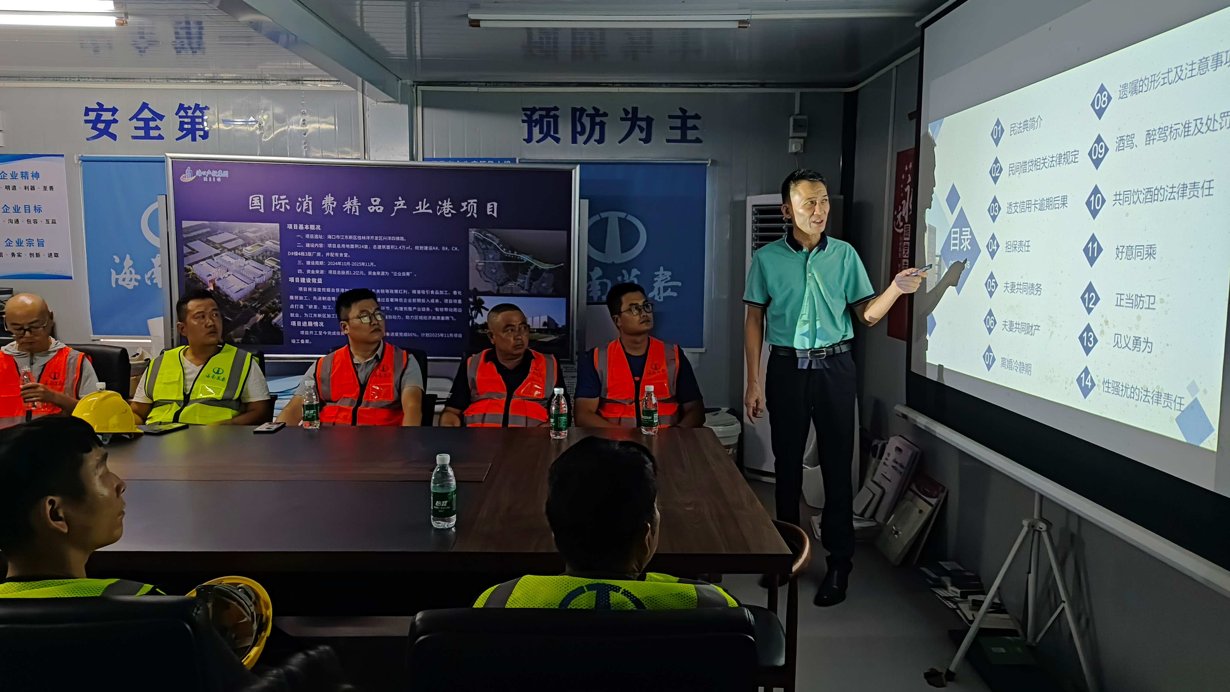 為進(jìn)一步做好普法宣傳工作,增強(qiáng)基層職工的維權(quán)意識,10月20日下午,由海南省建設(shè)工會主辦的“送法律講座進(jìn)企業(yè)進(jìn)工地”活動走進(jìn)海南萬泰建筑工程有限公司承建的江東新區(qū)國際消費(fèi)精品產(chǎn)業(yè)港項目工地現(xiàn)場。近20名項目管理人員及工人代表參與此次普法課堂,活動旨在強(qiáng)化基層職工法律意識與維權(quán)能力。