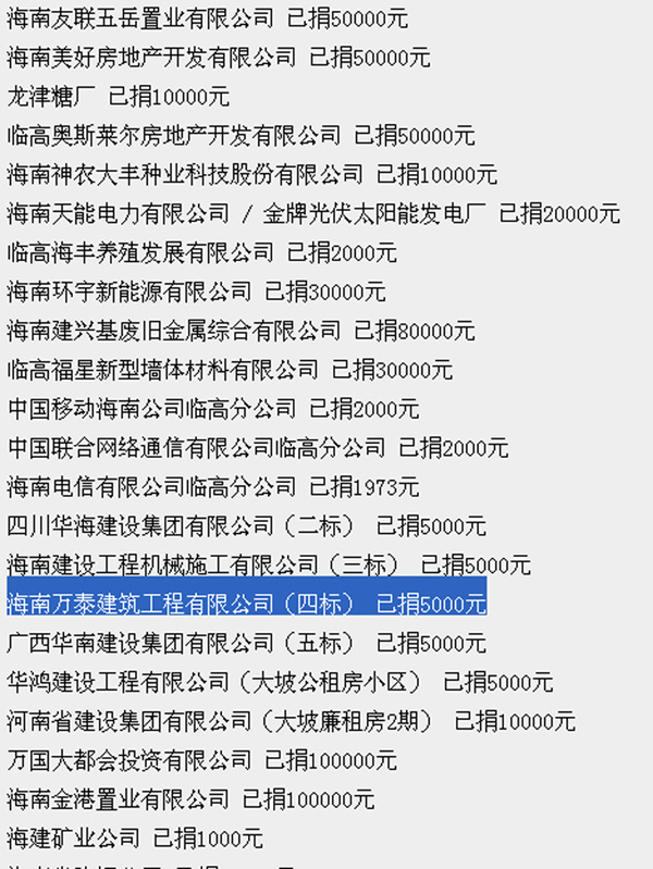 2013年臨高縣“愛心助學(xué)·陽光行動”企業(yè)捐款