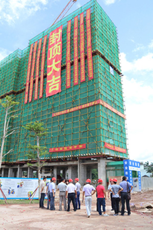 自今年二月份瓊海“信達?銀海御湖(一期)”項目開工以來,海南萬泰施工團隊不畏艱辛,克服海南高溫多雨的氣候特點,保質(zhì)、保量,緊張施工,嚴格把控項目的各個施工細節(jié),“信達?銀海御湖(一期)”項目9#樓率先完成主體封頂。