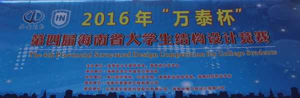 2016年5月28日早8點(diǎn),由海南萬(wàn)泰建筑工程有限公司贊助并冠名的“萬(wàn)泰杯”第四屆海南省大學(xué)生結(jié)構(gòu)設(shè)計(jì)大賽在海南大學(xué)聯(lián)誼館拉開(kāi)了序幕。