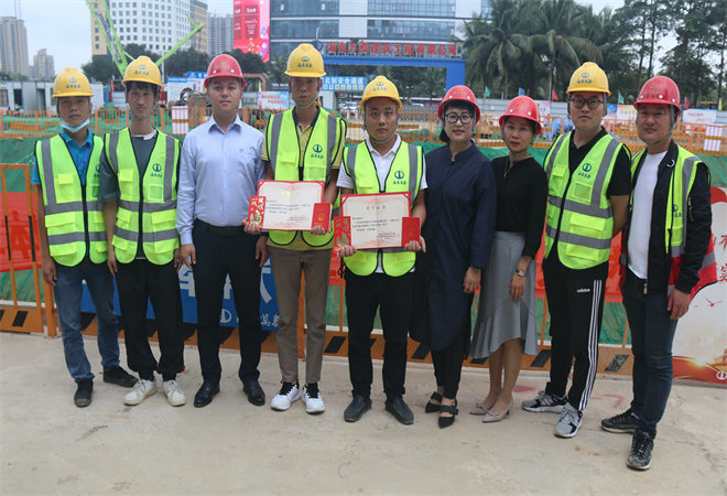 3月25日上午,根據(jù)公司安排,黨支部、工會前往省政務(wù)中心項(xiàng)目工地現(xiàn)場,為參加省人力資源開發(fā)局聯(lián)合省建設(shè)工會主辦的“2020年海南省行業(yè)職業(yè)技能競賽---建筑行業(yè)職業(yè)技能競賽”并獲得砌筑二等獎、三等獎的周宗清、李業(yè)倫頒發(fā)榮譽(yù)證書、高級工職業(yè)資格證書和現(xiàn)金獎勵。