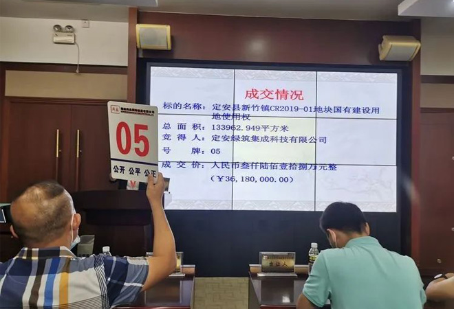 2020年4月17日上午8:30,海南綠筑裝配式產(chǎn)業(yè)基地項目成功摘牌,該項目位于定安縣新竹鎮(zhèn)中線高速公路東側(cè),土地性質(zhì)為二類工業(yè)用地,占地面積200.94畝,總投資6億元。
